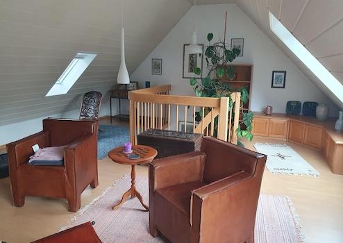 Zum Verkauf steht eine attraktive Maisonette-Wohnung in einem angenehmen und ruhigen Mehrfamilienhaus in ruhiger Lage in Bad Herrenalb. Die Wohnung erstreckt sich über 2 Ebenen. Vom Eingang gelangen Sie über den Flur rechterhand in 2 Räume, die sich als Schlaf- Büro- oder Kinderzimmer anbieten. Geradeaus befindet sich das geräumige Tageslichtbad mit Dusche, Eckbadewanne, Waschbecken und WC. Das Badezimmer verfügt über eine Fußbodenheizung. Vom Flur nach links eröffnet sich ein großer offener Wohn- Essbereich mit Küchenzeile und Zugang zu einer geschützten Terrasse mit Blick ins Tal und den gegenüber liegenden Wald. Über eine schöne Holztreppe gelangen Sie ins Obergeschoss mit lichtdurchfluteter Galerie, die vielfältig nutzbar ist. Die Wohnung wird elektrisch beheizt.