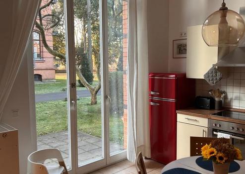 High ceilings, terrace, garden access and full equipment - only 10 minutes from the historic center of Potsdam.