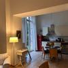 Die möblierte Wohnung ist vollständig ausgestattet und sofort bezugsbereit. Der kombinierte Wohn- und Küchenbereich mit Esstisch und Sofa lädt zum Entspannen ein, während ein separater Arbeitsbereich mit Schreibtisch perfekte Voraussetzungen für konzentriertes Arbeiten bietet - ideal für Berufstätige, Expats oder längere Aufenthalte.
