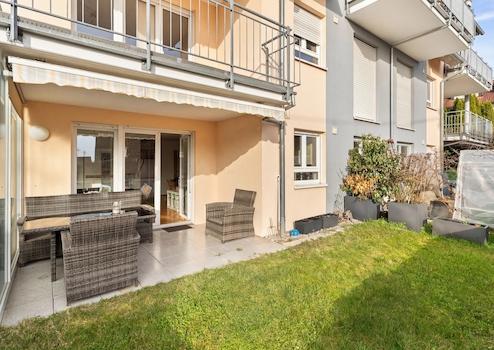 Barrierefreie 3,5-ZW mit Südterrasse, Garten, Tiefgarage & Aufzug in Markdorf – altersgerecht wohnen