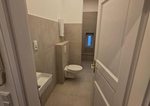 Zusätzlich wurde ein separater Wasseranschluss neben der Toilette für ein Bidet bzw. eine Hygienedusche installiert.