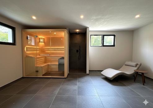 Wellness & Fitness im eigenen Haus: Ein durchdachtes Raumkonzept ermöglicht die Integration einer privaten Saunalandschaft sowie eines eigenen Sportzimmers – ideal für den Ausgleich zum Alltag.