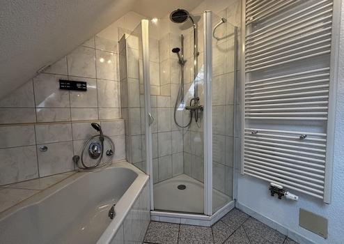 ein Badezimmer sowie ein separates Gäste-WC. Das