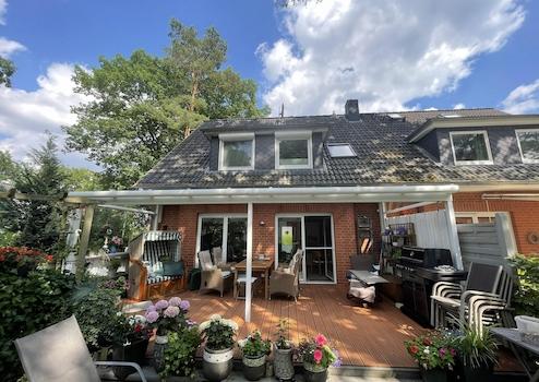 5 Zimmer plus Doppelhaushälfte mit EBK, Kamin, Fußbodenheizung in Hamburg Hausbruch Waldseite