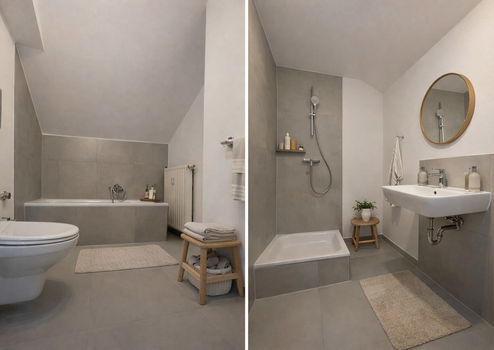 🚿 Badezimmer mit Badewanne und Dusche, WC und Waschbecken – perfekt zum Entspannen
