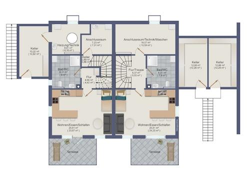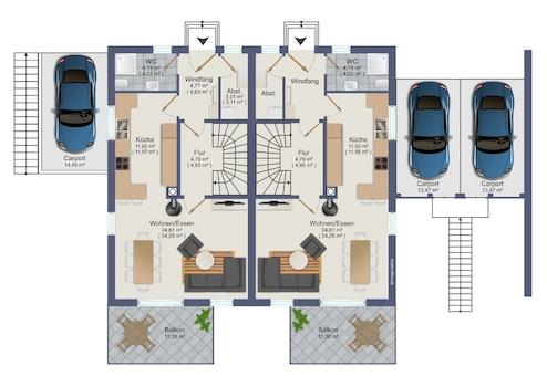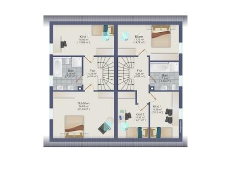 Die Doppelhäuser sind mit hochwertigen Materialien geplant und verfügen über eine moderne Architektur. Jedes Haus bietet großzügige Wohnflächen, die eine individuelle Gestaltung und Nutzung der Räume ermöglichen.