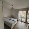 The apartment features a bright living room with access to the balcony, a bedroom, a shower room, and a built-in kitchen.