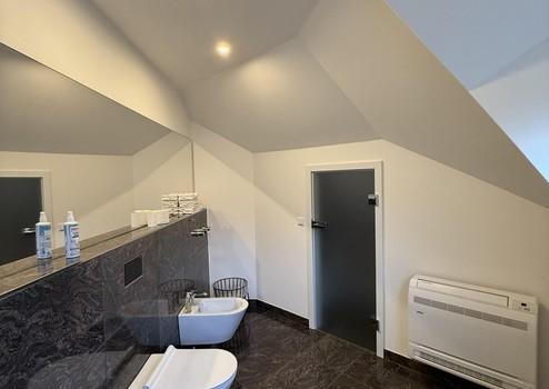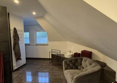 Obergeschoss: Flur, zwei Schlafzimmer, großes Hauptbad von 30 qm, Abstellraum