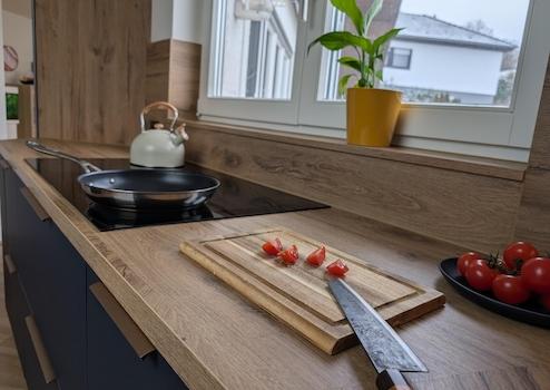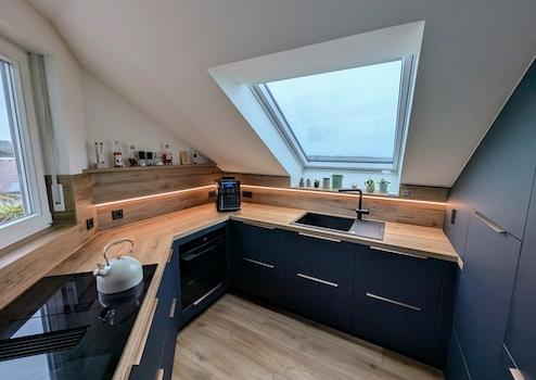 Küche: Offene, voll ausgestattete Einbauküche (Einbau 2024)