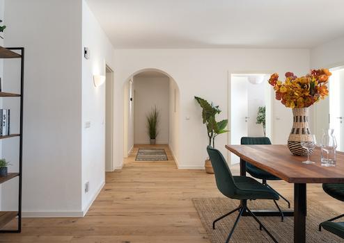 Diese großzügige 4,5 Zimmer Wohnung in der Kampenwandstraße 23 bietet mit rund 140 m² Wohnfläche auf einer Ebene und zusätzlicher Nutzfläche von ca. 28 m² im Untergeschoss ein Wohnerlebnis, das Raum, Komfort und Atmosphäre perfekt miteinander verbindet.