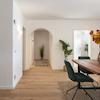 Die Kombination aus klarer Architektur, Eichenparkett und hochwertigen Materialien schafft ein behagliches Raumgefühl.