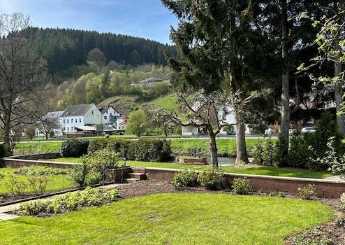 Das Haus ist sehr idyllisch gelegen und bildet den Mittelpunkt zwischen Auszeit und Erholung auf zwei ganz unterschiedliche Arten. Auf der einen Seite befindet sich der Bahnhof, der Sie ganz schnell von A nach B bringt. Auf der anderen Seite können Sie die Gewässer der Kyll genießen, die über Ihre eigenen Stufen zu erreichen ist und besonders im Sommer eine Erholung direkt vor der Haustür bietet.