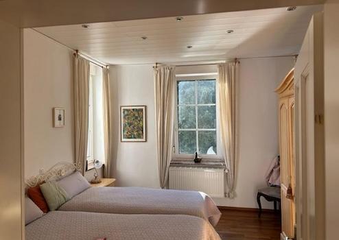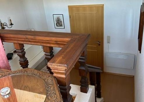 Das Dachgeschoss ist ein wahres Highlight dieser Immobilie. Hier finden Sie zwei geschmackvoll gestaltete Schlafzimmer, ein charmantes Turmzimmer mit Empore, das als Rückzugsort oder Arbeitszimmer genutzt werden kann, sowie ein weiteres Gäste-WC. Auch hier sorgt ein Holzkamin für eine warme und einladende Stimmung.