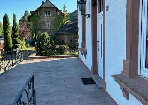 Das Grundstück ist zur Straßenseite voll eingezäunt, ausgenommen der Bereich der Garagen.Ein märchenhaftes Gebäude mit Sandsteinsäulen und Sandstein umrandeten Fenstern empfängt Sie in einem wunderbar gepflegten, parkähnlichen Grundstück mit einer Gesamtgröße von fast 2.500 m² Fläche mit Blick auf die Burg . Zusammenfassend ist diese liebevoll gestaltete Immobilie also ein Traum für Jedermann.