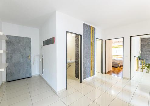 Bereits beim Betreten der Wohnung überzeugt der geräumige Eingangsbereich mit einem großzügigen Abstellraum und viel Stauraum – eine Seltenheit in vergleichbaren Objekten.