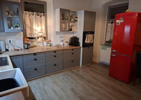Diese ca. 120 m² große Wohnung wurde 2020 umfassend renoviert. Fußböden mit hochwertigem Eichenparkett ausgestattet. Der große Flur sticht mit seinem originale belassenem Fliesenfussboden aus Fabrikantenzeit hervor. Das Badezimmer verfügt über eine Badewanne und separater Dusche.