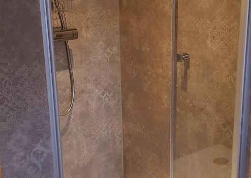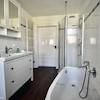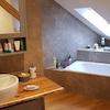Ein top modernes Badezimmer im urigen Stil mit Badewanne und separater, begehbarer Dusche laden zum Wohlfühlen ein.