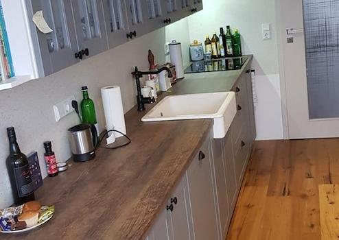 Eine wunderschöne, moderne, extra angefertigte Einbauküche macht die Küche zu einem besonderen Raum.