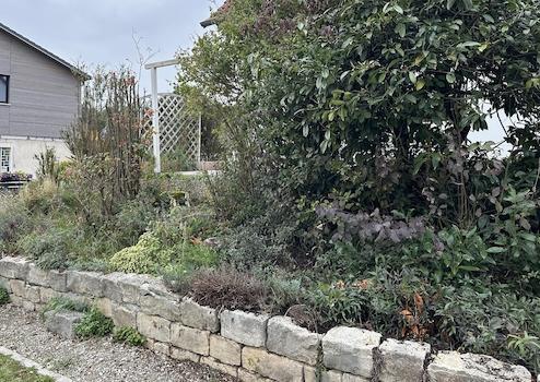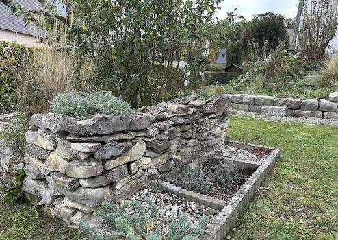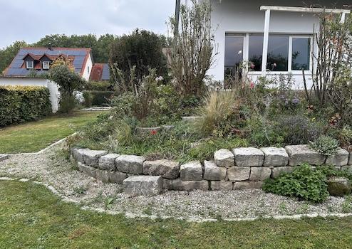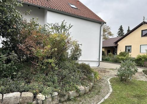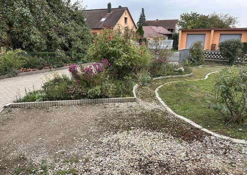 Der Garten wurde individuell mit Beeten und kleineren Wegen gestaltet. Ein kleiner Teich mit angrenzender Sitzecke ist ebenfalls vorhanden und bietet viele Möglichkeiten für eine weitere individuelle Gestaltung.