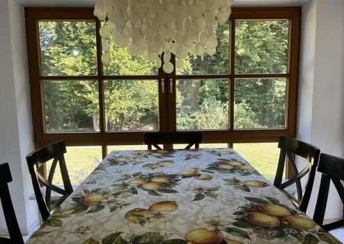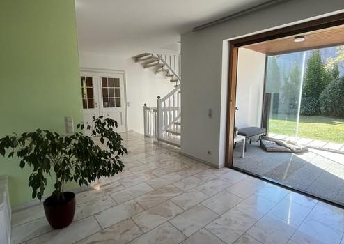 Im Inneren überzeugt das Haus mit viel Licht und Großzügigkeit. Das Erdgeschoss punktet mit edlem Marmorboden, der dem weitläufigen Wohn- und Essbereich eine elegante Atmosphäre verleiht. Große Fensterflächen sorgen für lichtdurchflutete Räume und wunderschöne Gartenblicke. Ein Highlight ist der 2021 ergänzte Wintergarten – Ihr perfekter Platz zum Entspannen zu jeder Jahreszeit. Die nach Westen ausgerichtete Terrasse mit unverbautem Blick garantiert perfekte Sonnenuntergänge.