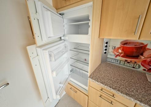 (Spülmaschine, Cerankochfeld, Backofen, Kühlschrank mit Gefrierfach, Radio sowie einer fest eingebauten Mikrowelle).
