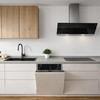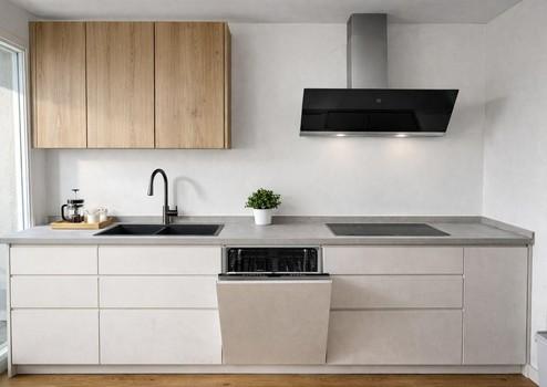 •Moderne Einbauküche mit Backofen, Herd und großem Kühlschrank