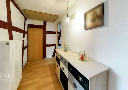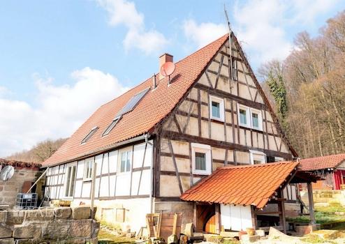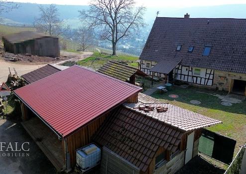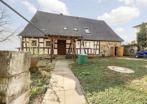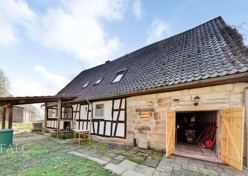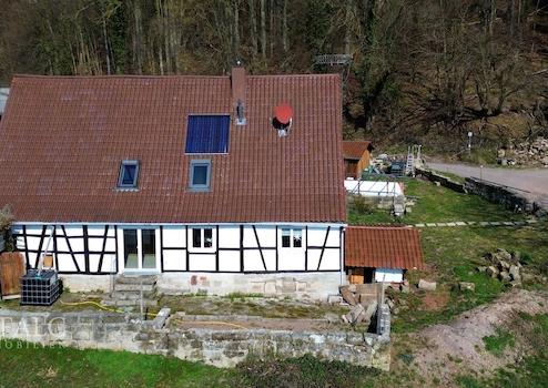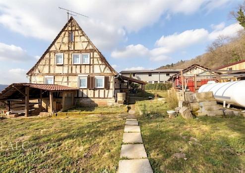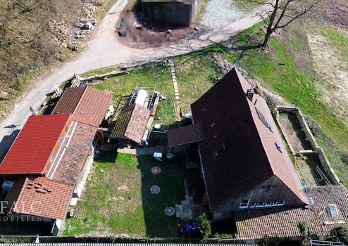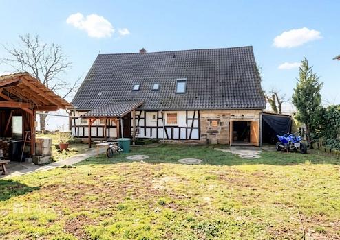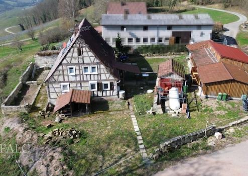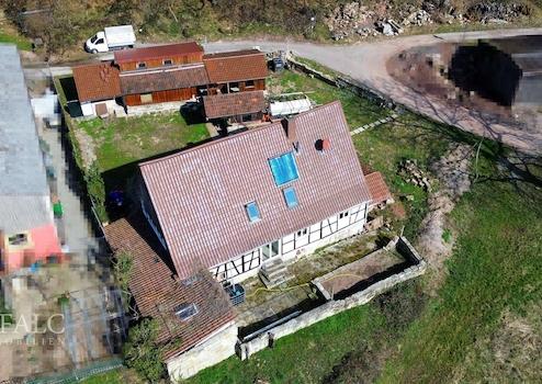 Angeboten wird ein Fachwerk-Bauernhaus mit robusten Eichenfachwerkbalken in einzigartiger Aussichtslage mit unbekanntem Baujahr. Die ersten Pläne sind von 1968, vermutlich wurde in diesem Zeitraum das Gebäude das erste Mal kernsaniert. Am Eingang zum Gewölbekeller ist die Zahl 1822 eingemeißelt. (Kein Denkmal)