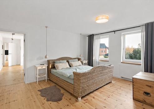 Im Obergeschoss erwarten Sie zwei weitere großzügige Schlafzimmer. Eines davon verfügt über eine angrenzende Ankleide, während das zweite Zimmer mit ca. 33 m² besonders viel Platz bietet und sich bei Bedarf problemlos wieder in zwei separate Schlafzimmer aufteilen lässt – ideal beispielsweise für Kinder oder Gäste.