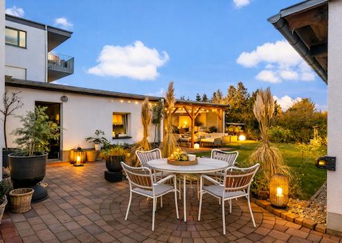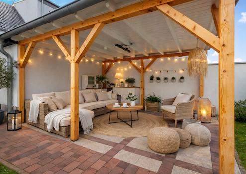 • große überdachte Terrasse mit Blick in den Garten
