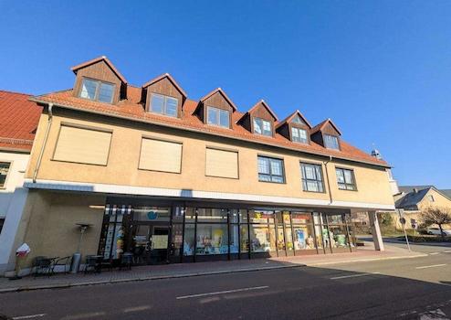 - zwei zusammenhängenden Wohn- und Geschäftshäusern, die über 2 großzügige Ladengeschäfte und 10 Wohneinheiten auf 874 m² teilweise mit Balkonen verfügen. Das Herzstück des Objektes ist das 1850 gebaute denkmalgeschützte spätbarocke „Bürgerhaus“, das 1998 komplett saniert wurde. Im Zuge dessen wurden im gleichen Jahr zwei Wohn-Flügel angebaut.