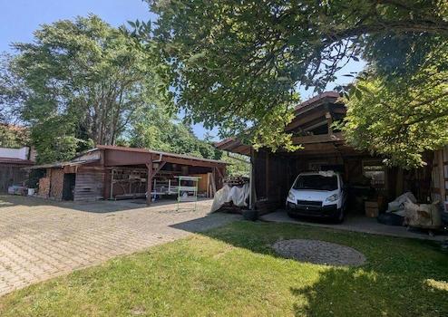 Für Hobby, Handwerk oder zusätzliche Nutzungsmöglichkeiten steht eine große Werkstatt zur Verfügung, ebenso wie praktische Abstellschuppen/Garagen. Ausreichend Stellplätze sowie zwei Carports sorgen für sorgenfreies und komfortables Parken. Ein großer Garten mit Spielplatz schafft Raum für Freizeit und Erholung direkt vor der eigenen Tür.