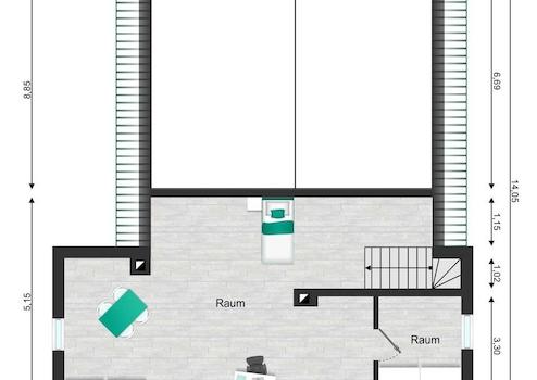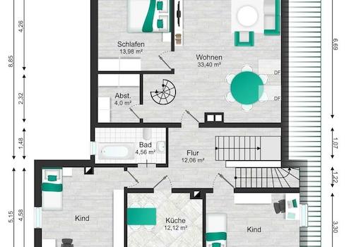 - WE03 Maisonette im OG/DG - 161,33 m²: 5 Zimmer, Studio/Galerie, Küche, Bad, Kamin, Balkon