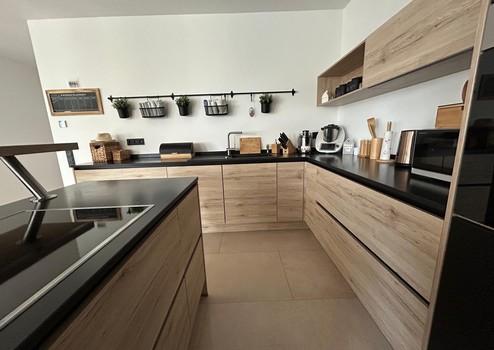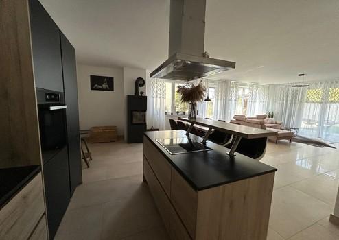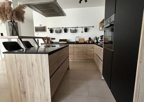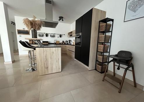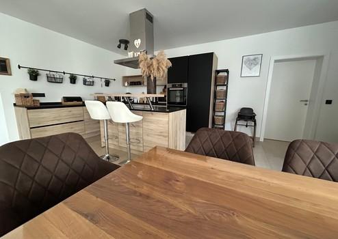 Die großzügige Einbauküche mit Kochinsel ist sowohl funktional als auch optisch ein echter Blickfang und lädt zum gemeinsamen Kochen und Genießen ein.