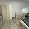 The Room is furnished with a bed, wardrobe, chest of drawers, desk, chair, lamp, mirrow, little Carpet