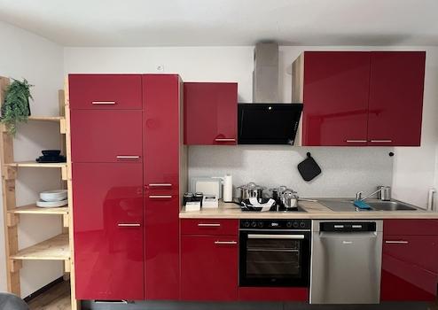 Die gemeinsame Küche ist voll ausgestattet mit Herd (neu), Backofen (neu), Kühl- und Gefrierschrank (neu), Spülmaschine sowie einem großen Esstisch und neue Kochutensilien.
