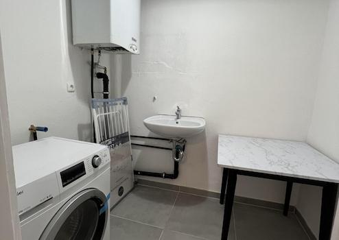 • Abstellraum mit neuer Waschmaschine und zusätzlichem Waschbecken zur gemeinsamen Nutzung