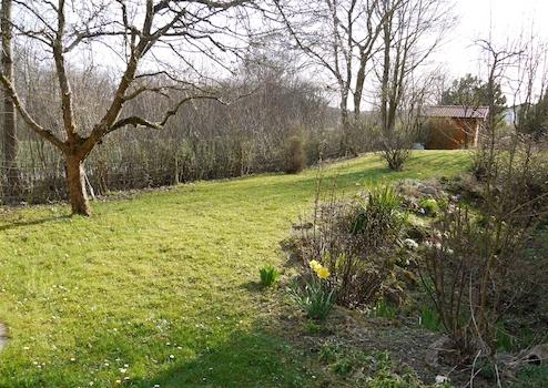 - Großer Garten am Ortsrand, freier Blick Richtung Süden auf Wald und Wiese