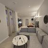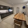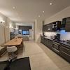 • Kitchen: Modern fitted kitchen with oven, microwave, dishwasher, coffee machine, bread slicer, kettle, and a full set of dishes and cookware.