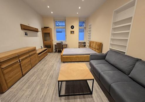 The apartment is fully furnished with modern, like-new equipment and is ready for move-in. Please note that the furnishings for the office are largely excluded from this