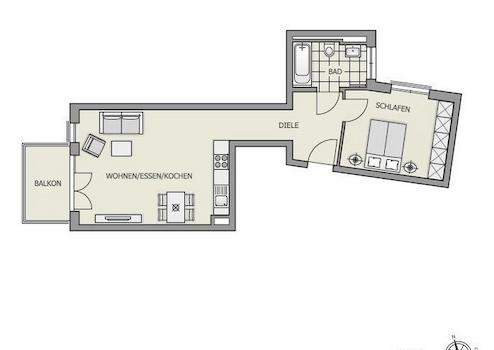 Die Wohnung besteht aus einem sehr hellen nach Westen ausgerichteten Wohnzimmer mit Balkon. Das Badezimmer mit Fenster und das Schlafzimmer sind in den ruhigen Innenhof mit grünem Gemeinschaftsgarten ausgerichtet. Im sehr großen Keller lässt sich einiges unterbringen. Die Wohnung steht ab Ende April zur Verfügung.