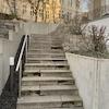 Die Garage liegt ebenerdig zur Straße, darüber befinden sich der Keller und das Erdgeschoss. Die Wohnung befindet sich somit von der Straße aus gesehen auf Höhe des dritten Obergeschosses.