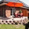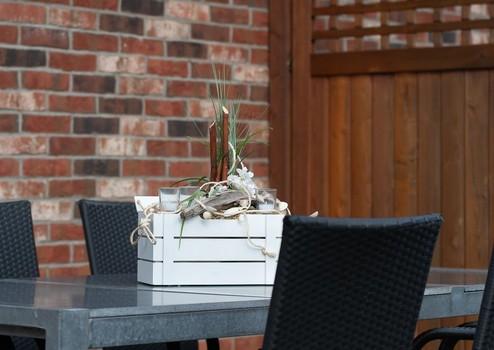 •große Terrasse mit Sitzmöbeln und Strandkorb