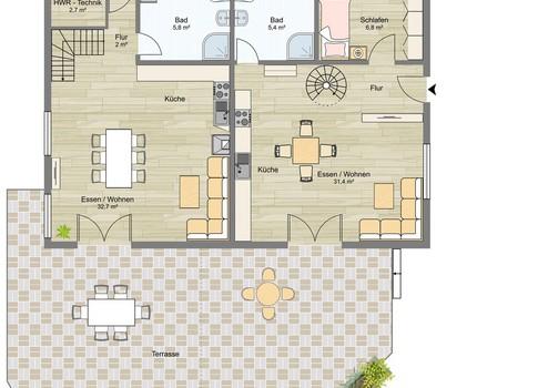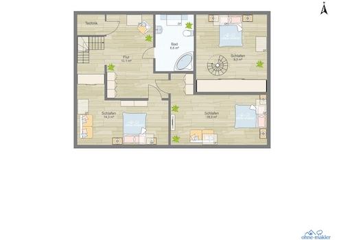 •Einliegerwohnung: ca. 55 m² (Maisonette)