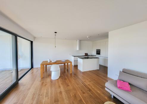 Das großzügige Tageslichtbad bietet Ihnen sowohl eine Badewanne als auch eine bodengleiche Dusche. Highlight der Wohnung ist das ca. 40 m² große Wohn-Esszimmer mit offener Küche und Zugang zum überdachten Balkon mit Blick in den Garten. Ein Arbeitszimmer, ein Hauswirtschaftsraum mit Anschluss für Waschmaschine und Trockner, ein Gäste-WC sowie ein PKW -Stellplatz runden dieses Angebot ab.