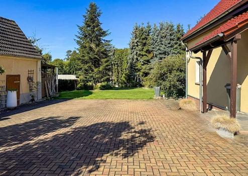 Der liebevoll angelegte Garten bildet eine grüne Oase mit viel Platz zum Spielen, Entspannen und Verweilen. Die sonnige West-Terrasse lädt zu langen Sommerabenden ein, während der großzügige Pool für echtes Urlaubsgefühl im eigenen Zuhause sorgt. Ein großzügiges Nebengebäude schafft zusätzlichen Stauraum für Gartengeräte und Hobbybedarf. Stellplätze auf dem Grundstück runden den komfortablen Gesamteindruck ab.
