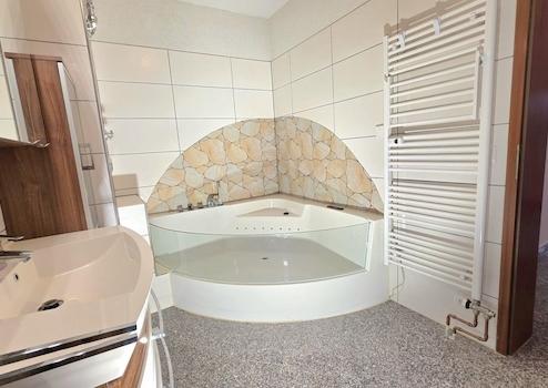 Bad en Suite mit Eckbadewanne, WC und Waschbecken