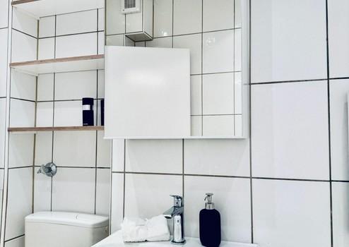 Bad: 2025 modernisiert mit neuen Armaturen, Spiegelschrank und WC mit Absenkautomatik.