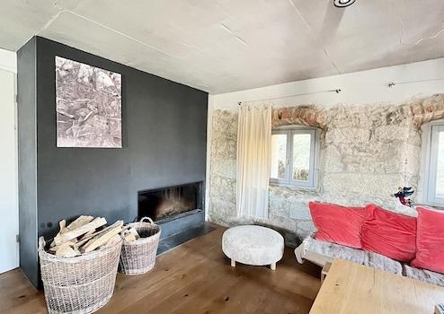 Zwei Kamine (Einbaukamin im EG mit Verbindung ins OG + freistehender Kamin)