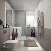 • Bäder mit großformatigen Fliesen (80 × 80 cm, matt, grau) an Boden und Wänden (inkl. deckenhoher Duschbereich)