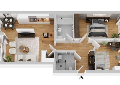 Die abgebildeten Illustrationen sind Visualisierungen, die Ihnen einen ersten Eindruck vom Bauprojekt vermitteln sollen. Geringfügige Abweichungen zum finalen Zustand sind möglich.